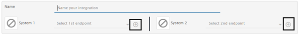 * Click the plus sign \[+] adjacent to the System 1 and System 2 fields. From the **Select 1st endpoint** and **Select 2nd endpoint** drop-down lists, select Jira and ServiceNow respectively.