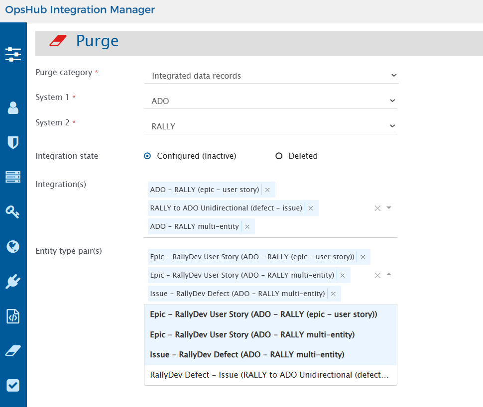* Users can select for which **entity type pair(s)** they want to purge the synced records.