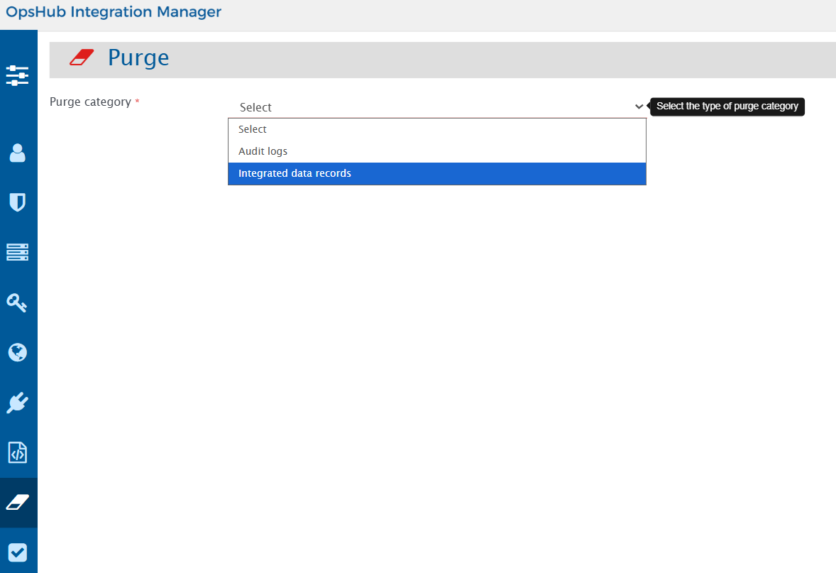 1. From the **Purge category**, select **Integrated data records** as shown in the image below.