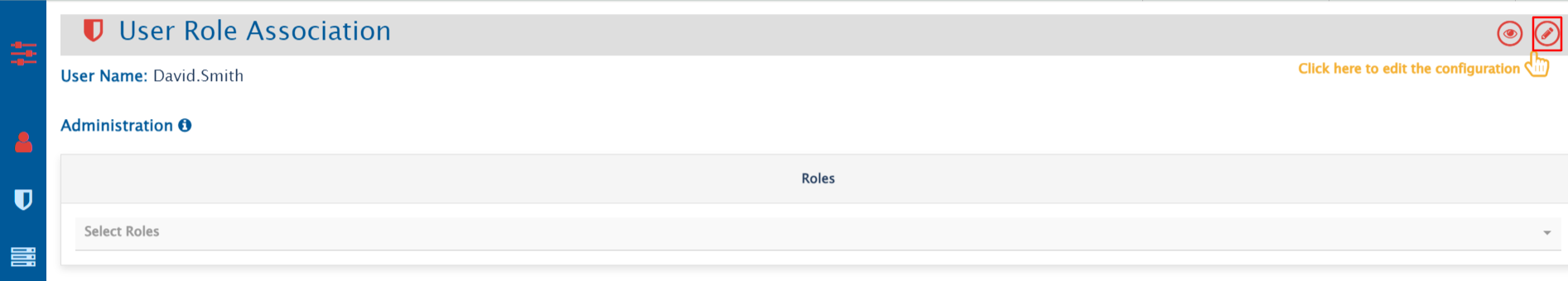 * Navigate to User Role Association screen and click on edit icon in top right corner as shown below: