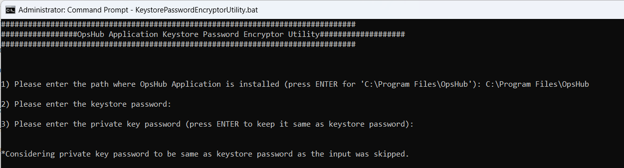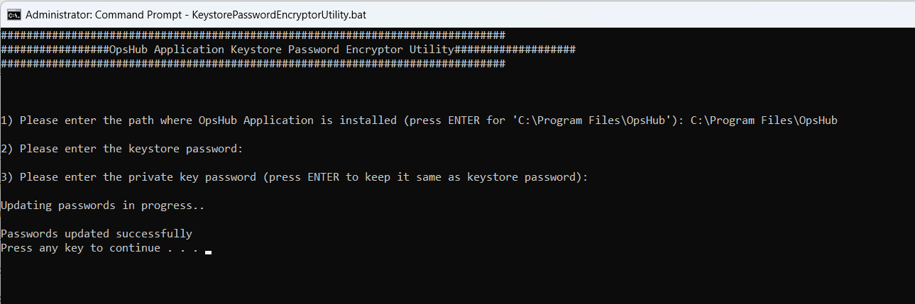 * It will update keystore and private key passwords in OpsHub application in the encrypted format.