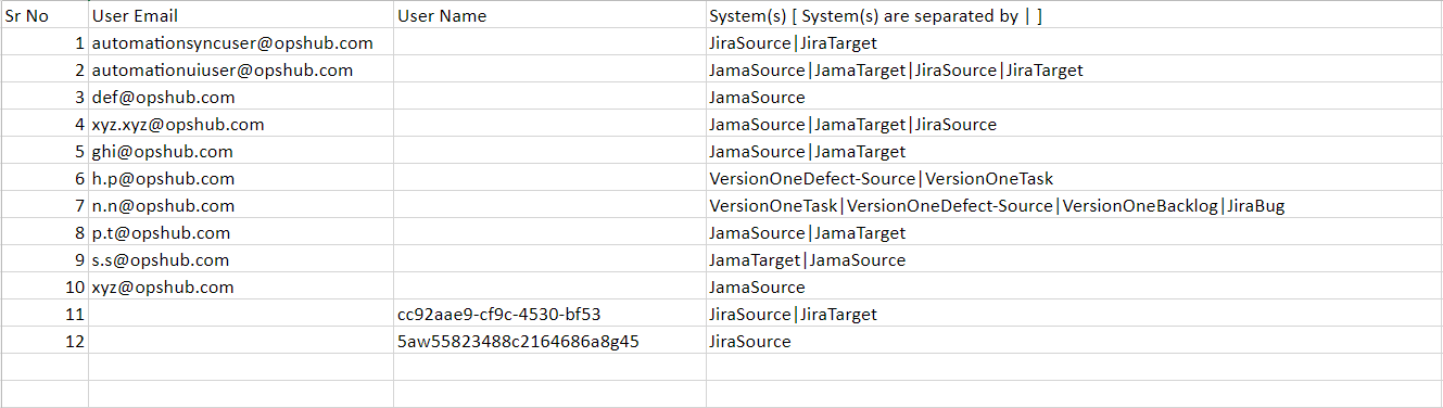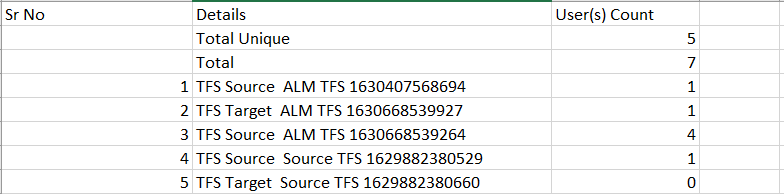 2. **UserCountDetailedReport.csv**: It contains detailed list for each users as per their availability in the systems configured. For more information, refer to [UserCountDetailedReport](#usercountdetailedreportcsv) section.