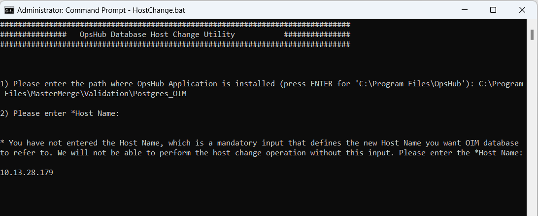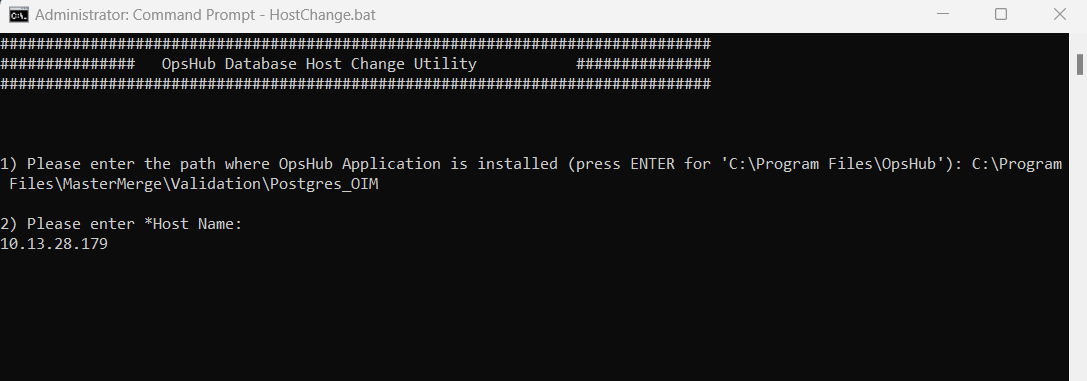 * Open Command Prompt with administrator privileges and go to <code class="expression">space.vars.SITENAME</code>'s directory `<Installation Folder or OpsHub>/Other_Resources/Resources/HostChange` using command **`cd <Installation Folder or OpsHub>/Other_Resources/Resources/HostChange`**