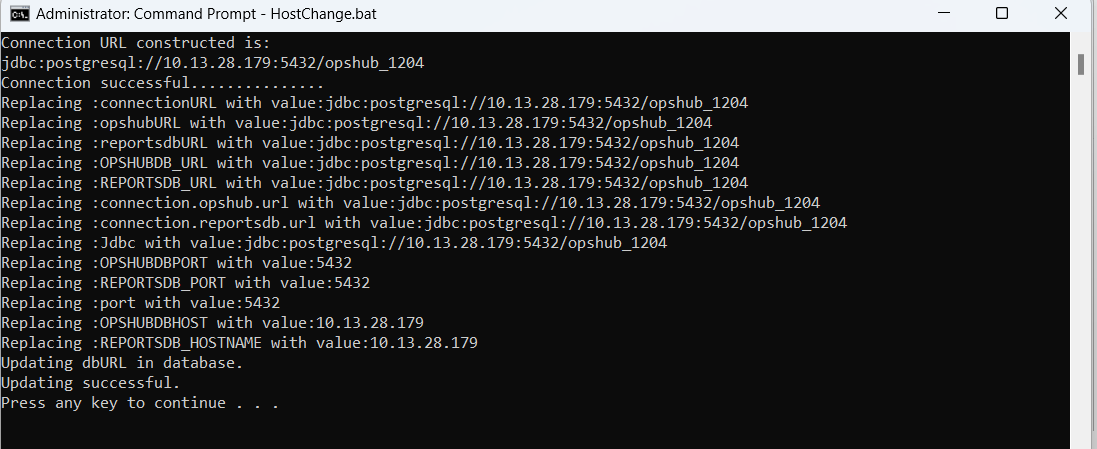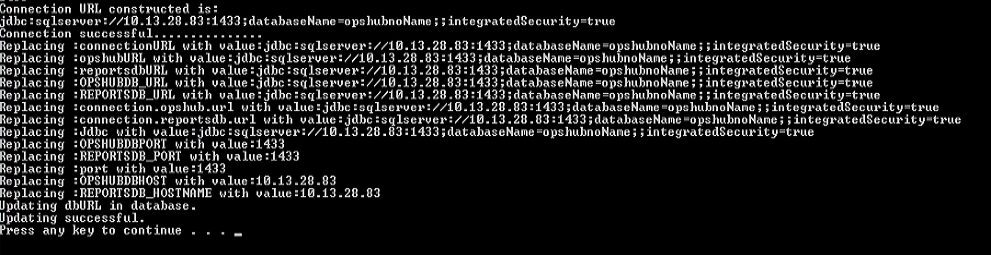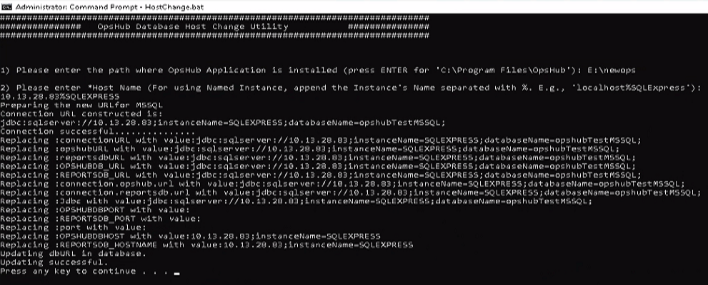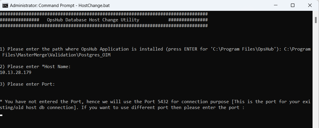 * If the new Host Name is a named instance, then there is no input required for the Port. Hence, after entering the Host Name, utility will check the connection with the new Host:
