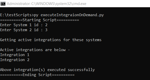 * Given two systems, if you want to execute/trigger all active integration configured between those systems, then you can use this sample script.