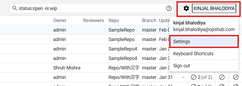 1. Go to Settings menu for the logged-in user from the user menu at top right corner.
