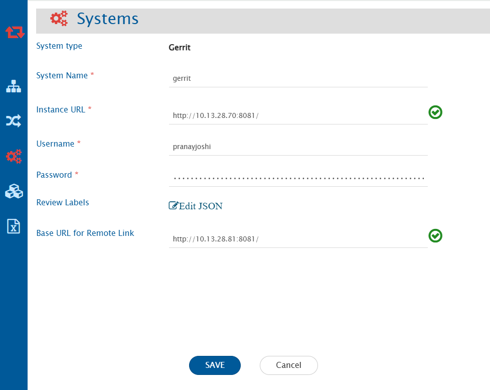 Review Labels configured in Gerrit can be given in the system form if required to synchronize. Review Labels mentioned here will be visible on Mapping Configuration screen. The "Code-Review" label will be added by default in <code class="expression">space.vars.SITENAME</code>. Refer to [this documentation](https://gerrit-review.googlesource.com/Documentation/config-labels.html) for more details.\