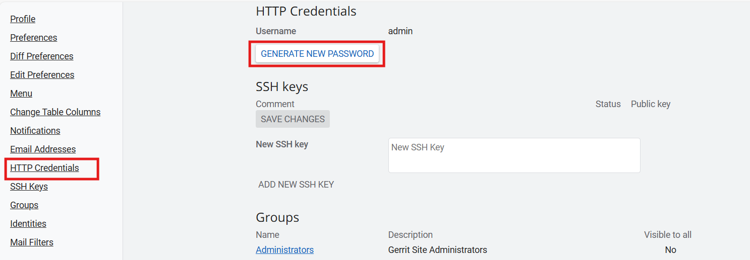 * Users can authenticate using HTTP credentials to communicate with Gerrit APIs. Refer to [HTTP Password Generation](#http-password-generation) for details on setting up and using HTTP credentials.