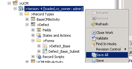 * Right click the schema version and click the **Save All** option.