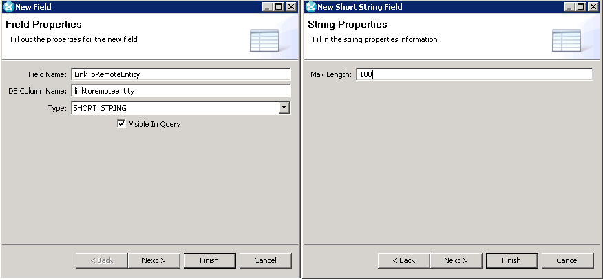 * Set **Field Name** to the required field name and select **SHORT\_STRING**.