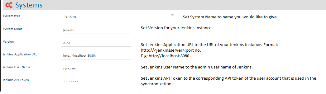 Before you continue to the integration, you must first configure Jenkins. Click [System Configuration](https://docs.opshub.com/v7.216/integrate/configure-integrations/system-configuration) to learn the step-by-step process to configure a system. Refer the screenshot given below for reference.