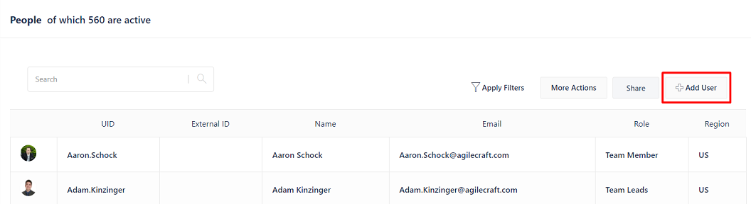 4. Click on the **Add User** button on top right corner of the users' list.<br>