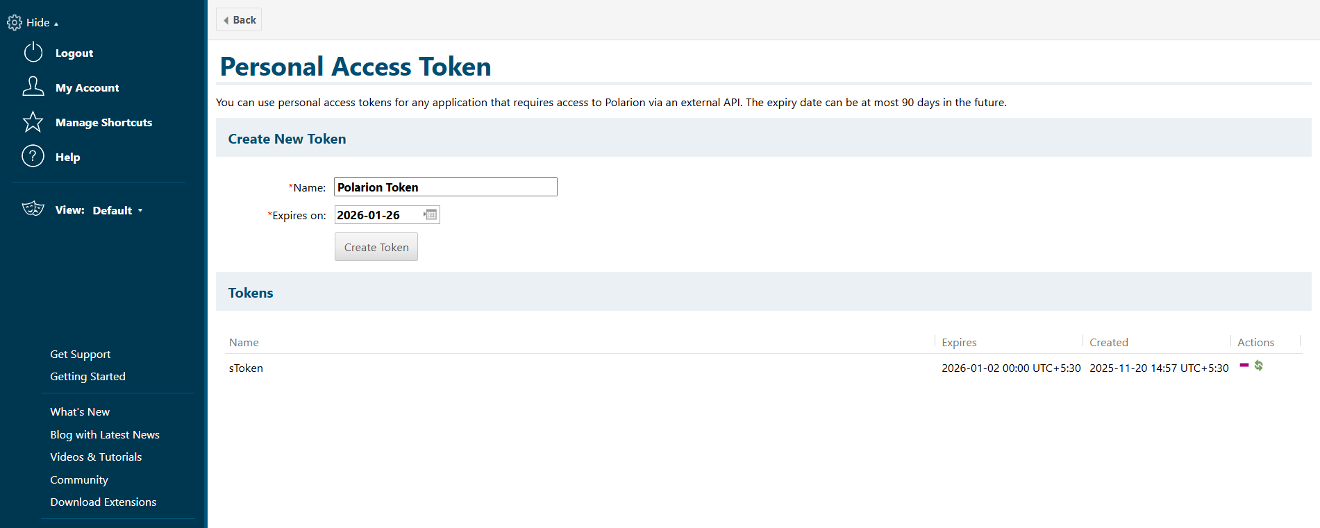 * It is recommended to regenerate API token before it expires, to avoid unexpected processing failures in <code class="expression">space.vars.SITENAME</code>.