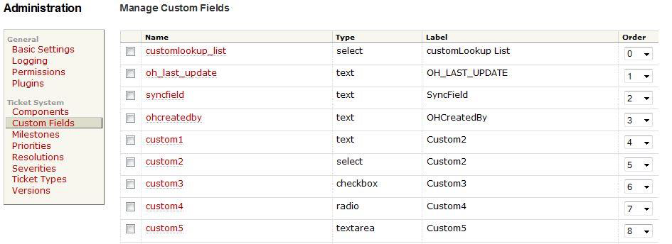 In Trac, following custom fields are required. For creating custom fields, please refer appendix [Custom Field Configuration](#custom-field-configuration).