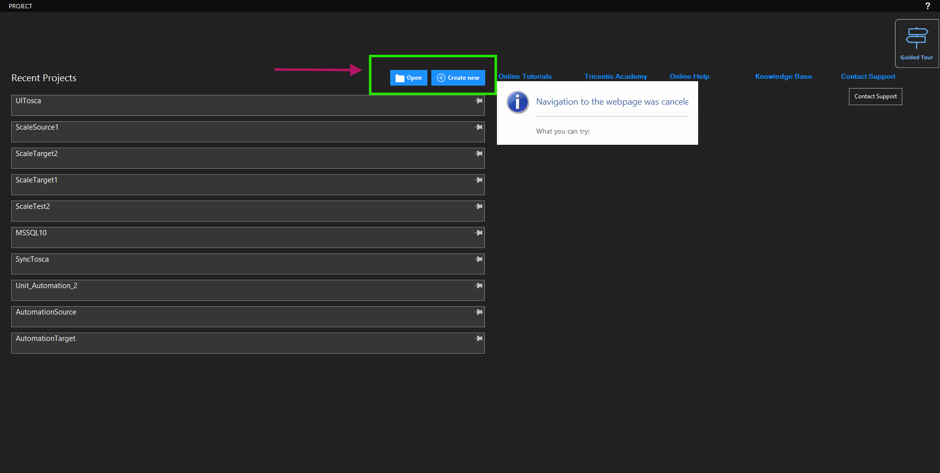 1. Open Tosca Commander -> Create New option for creating a new workspace.