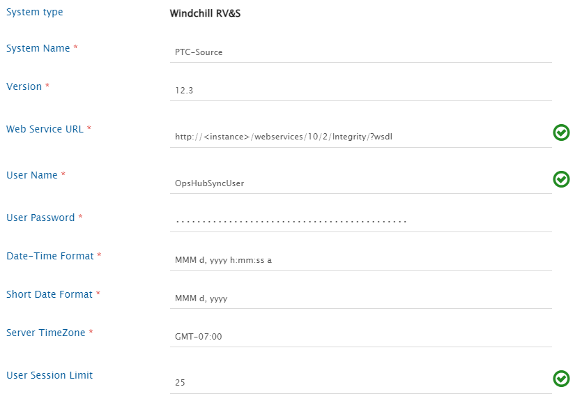 Before you continue to the integration, you must first configure Windchill RV\&S. Click [System Configuration](https://docs.opshub.com/v7.216/integrate/configure-integrations/system-configuration) to learn the step-by-step process to configure a system. Refer to the screenshot given below for reference.