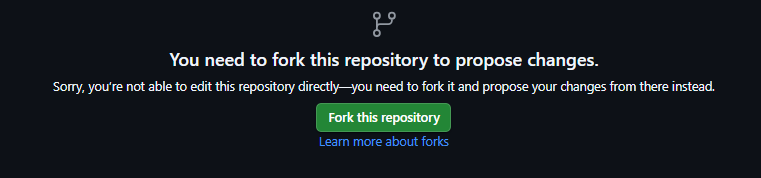 3\. GitHub will show: “You don’t have write access, so we created a fork for you.”