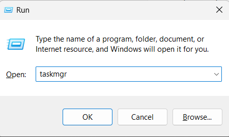 * Type 'taskmgr' and click OK to open Task Manager.