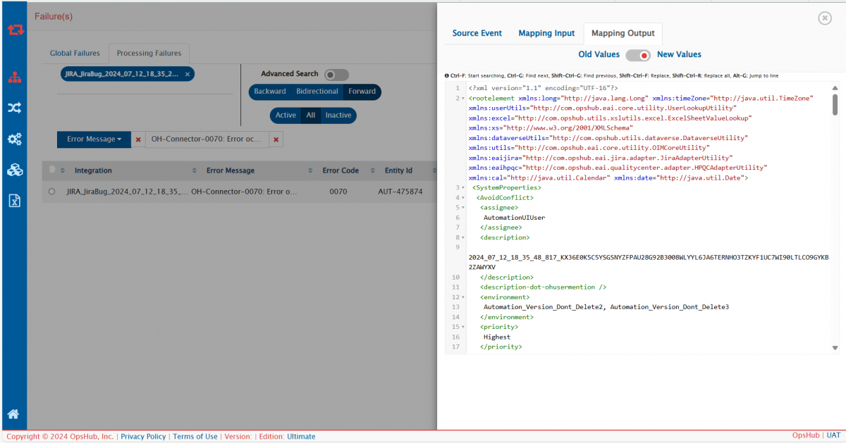 * If the failures are present in the older versions(before V7.170 upgrade): In that case, to view the mapping input & mapping output, the failures should be retried to have the information.