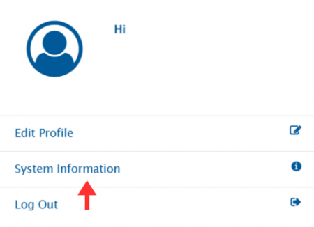 To view system information, click on the user profile icon in the top-right corner of the navigation bar.