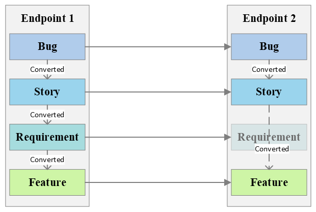 * If both the target systems, "Endpoint 2", and "Endpoint 3" support the conversion, the "Entity type" and/or "Project" conversions will be performed in the target systems.