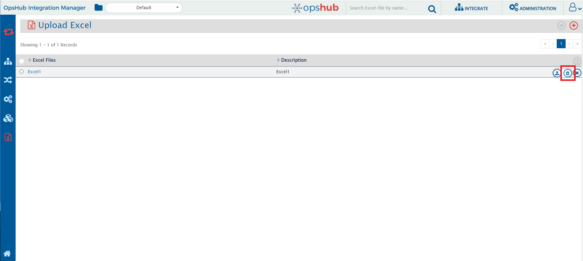 * To delete all the excel files at a time, the user can select the radio button in the Excel Files column.