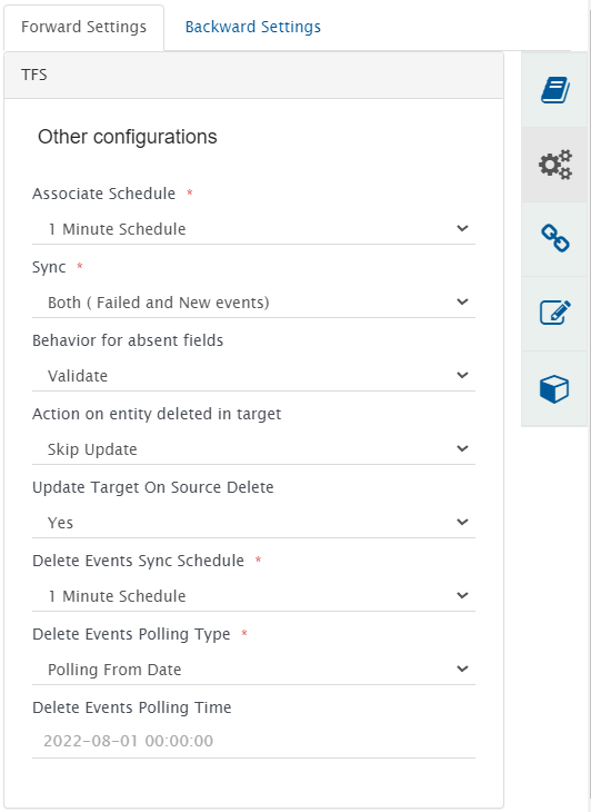 * For ALM (Application Lifecycle Management), PLM (Product Lifecycle Management), and Test Management systems, polling time is set to the last updated time on the selected source projects. If the project does not have data then polling time is set to the CurrentTime - 24 Hours.