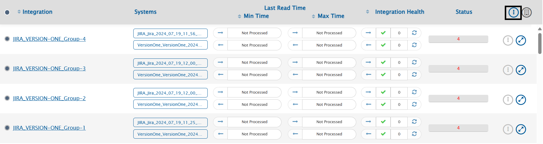 * The dashboard, by default, shows all integrations created so far on the selected instance.