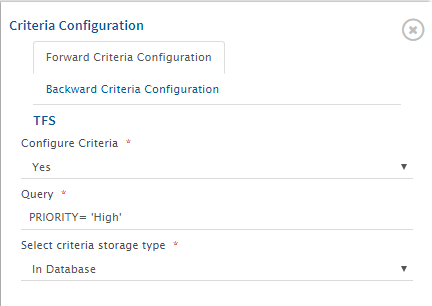 2. A pop-up window - **Criteria Configuration** appears on the right. In this window, for a bidirectional mapping, sections specific to both systems involved in the integration will appear in backward and forward criteria configuration tabs. Fill the requisite details.