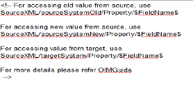 | **You can access the source old value:** | <p><code>SourceXML/sourceSystemOld/Property/$FieldName$</code><br><em>$FieldName$ is the internal name of the source system field</em></p> |