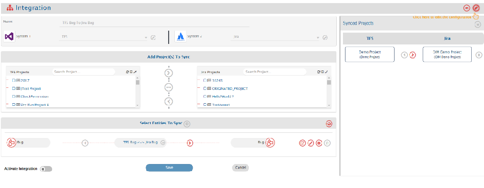 * Integration 2 \[TFS User Story to JIRA Requirement for Project 2] with Mapping 2 associated with the integration