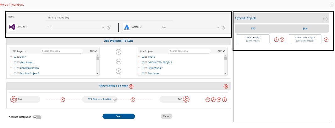 * Integration 1: TFS Bug Demo Project to Jira Bug OIM Demo Project