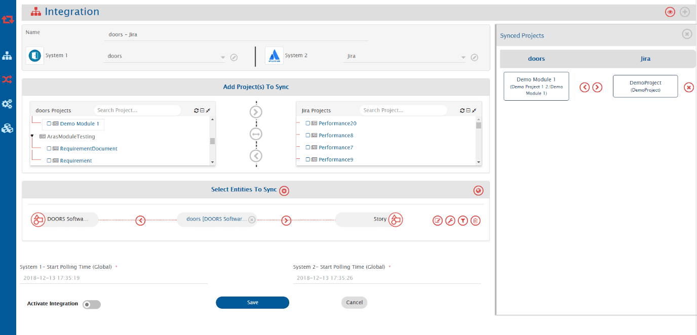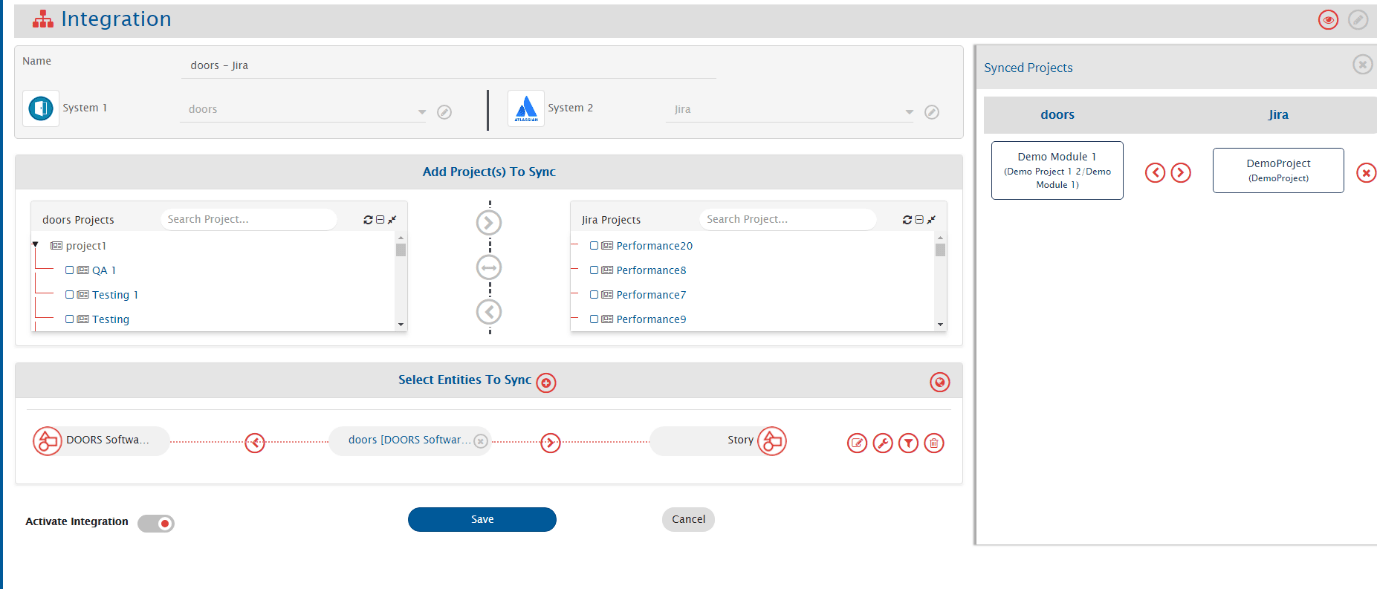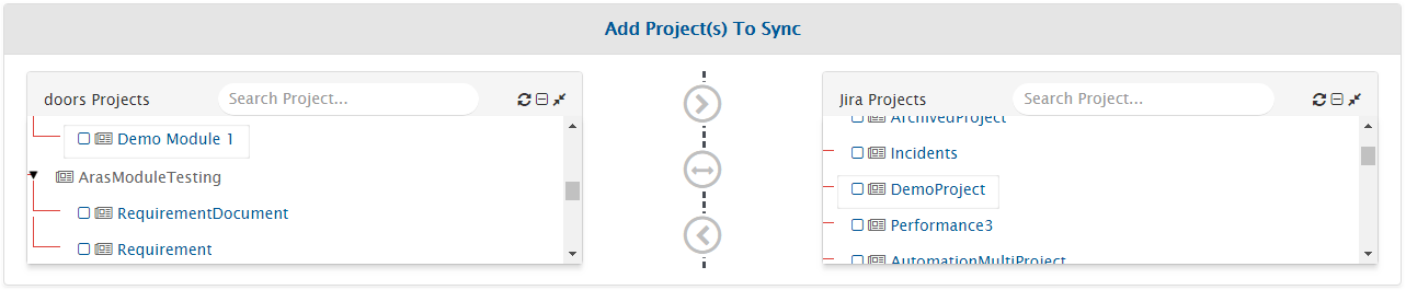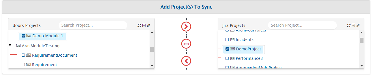 * For example, we select Demo Module 1 from IBM DOORS and DemoProject from Jira.