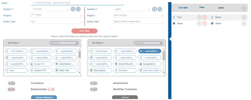 * Select **Case** from TestRail and **Test Case** from Jama and map them bi-directionally.