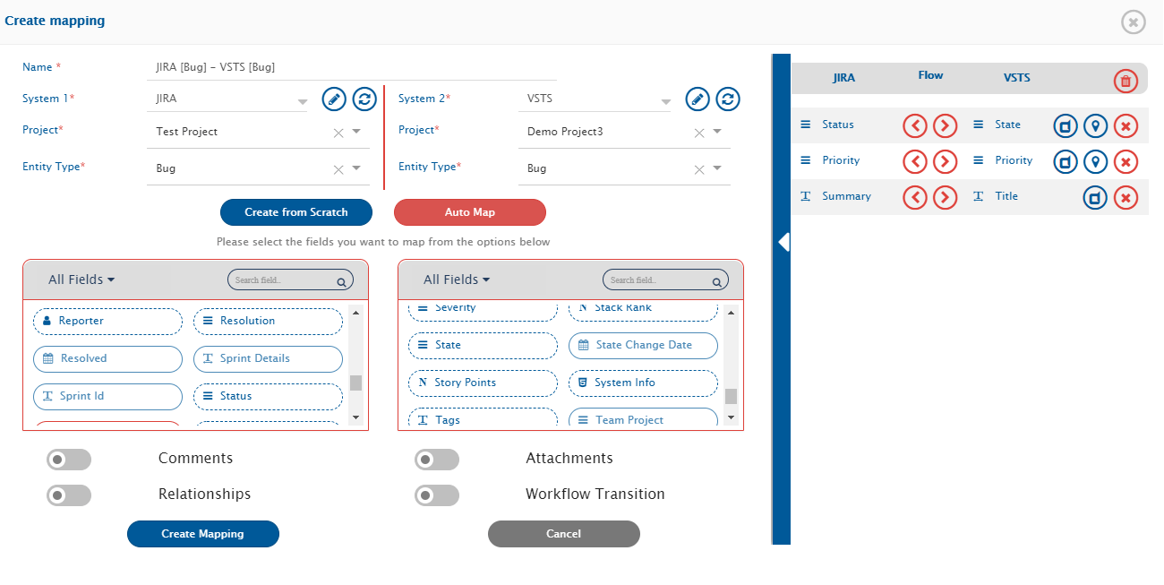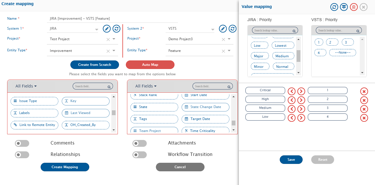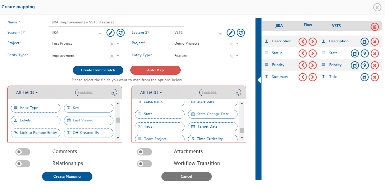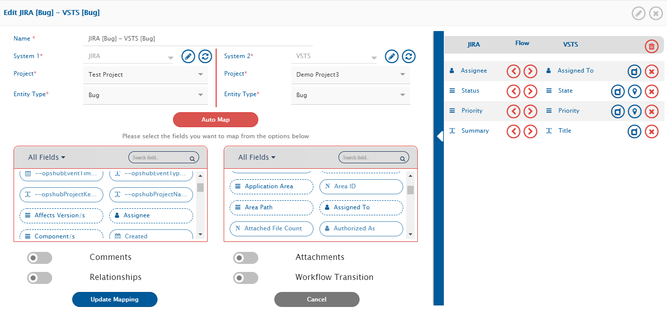 At this stage, you can also map entities such as comments and attachments. Refer to the videos on this page to learn in detail about [Comments](https://docs.opshub.com/v7.216/integrate/configure-integrations/mapping-configuration#comments) and [Attachments](https://docs.opshub.com/v7.216/integrate/configure-integrations/mapping-configuration#attachments) mapping.