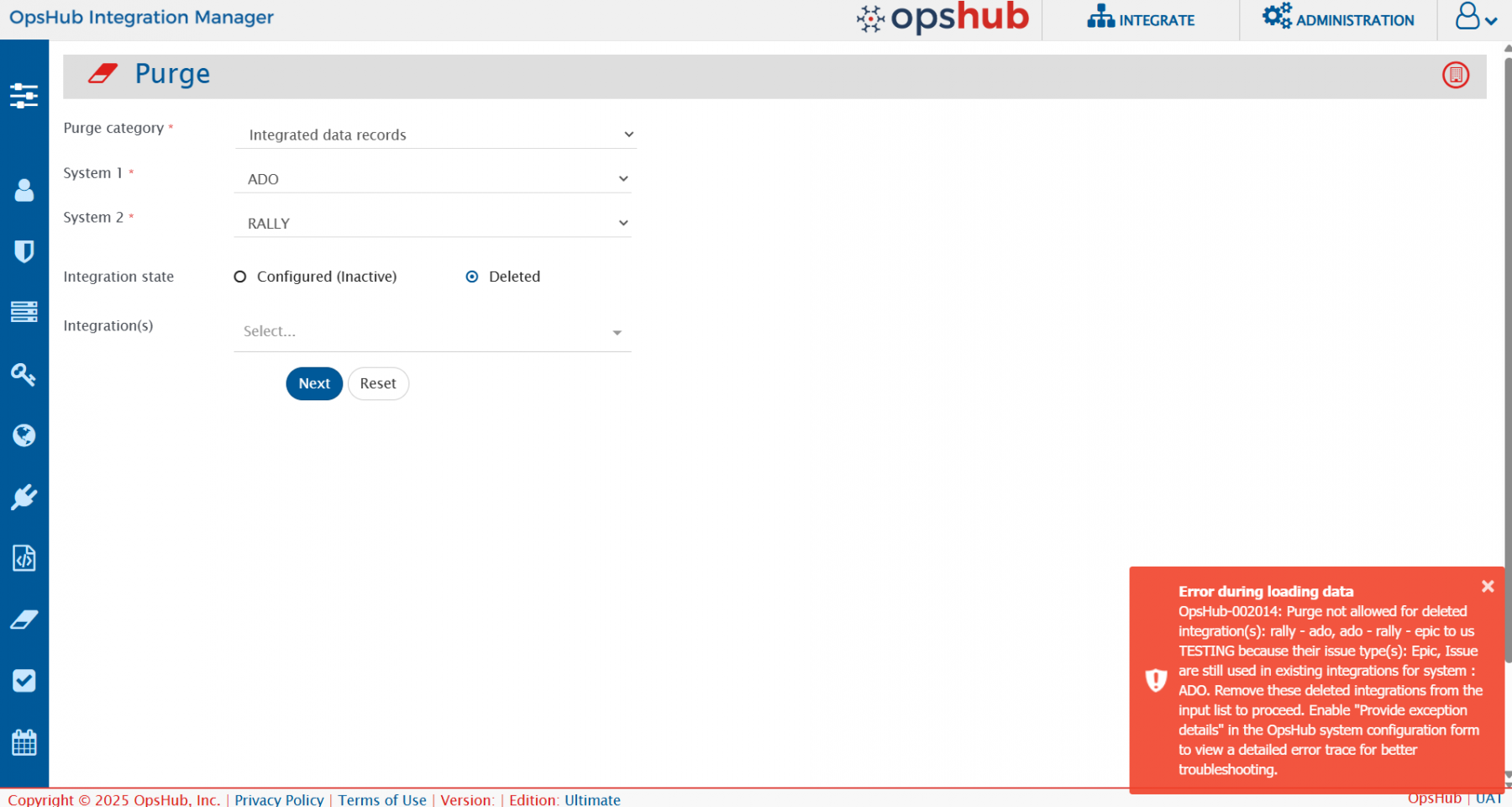 * Users with either a 'Professional' or 'Ultimate' license have access to the **Purge Integrated Data Records** feature.