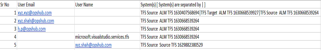 * It has the user details (User Email or User Name as per the details found during synchronization). Additionally, a corresponding list of systems is present in which the users' details are found.