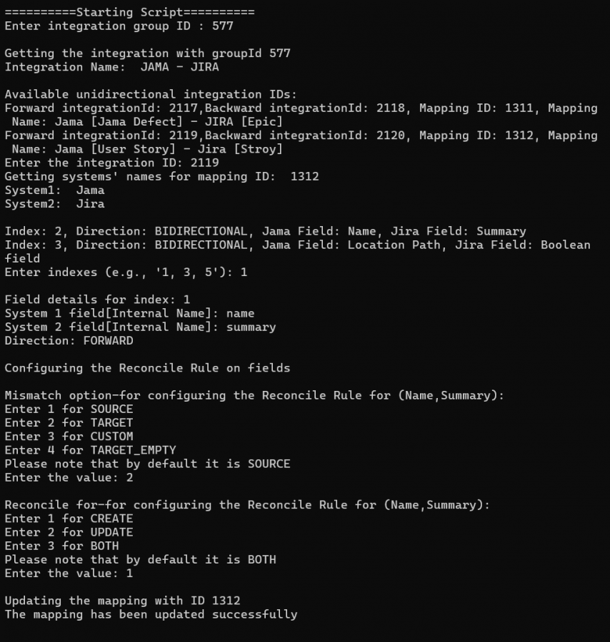 * To set reconcile rule on the existing mapping and configure reconciliation, use this sample script.