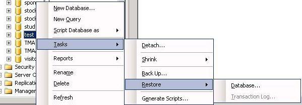 * **Select the database >> Right-click >> Tasks >> Restore >> Database.**