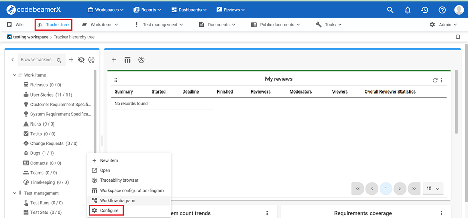 Select Trackers (codebeamer) / Tracker tree (codebeamer X) tab.