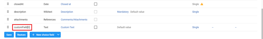 Select New Choice Field option to add a choice type field or New Custom Field option to add other types of custom fields.