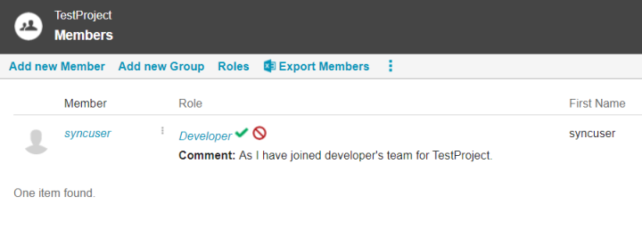 The user must be a member of all the projects that needs to be synchronized. To add a Project member refer to section Add Project Member.