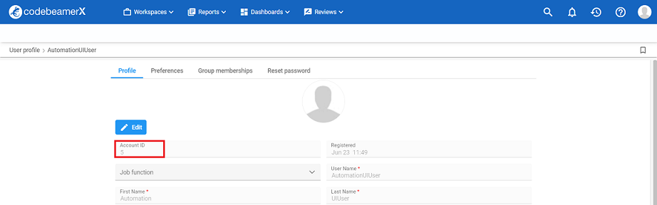 Provide the username of a dedicated user who will be used for communicating with codebeamer/codebeamerX API. This user should have the required privileges as mentioned in section, User privileges.