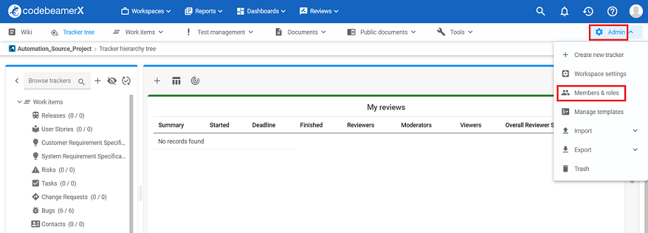Click on Members (codebeamer) / Members & roles (codebeamer X) option.