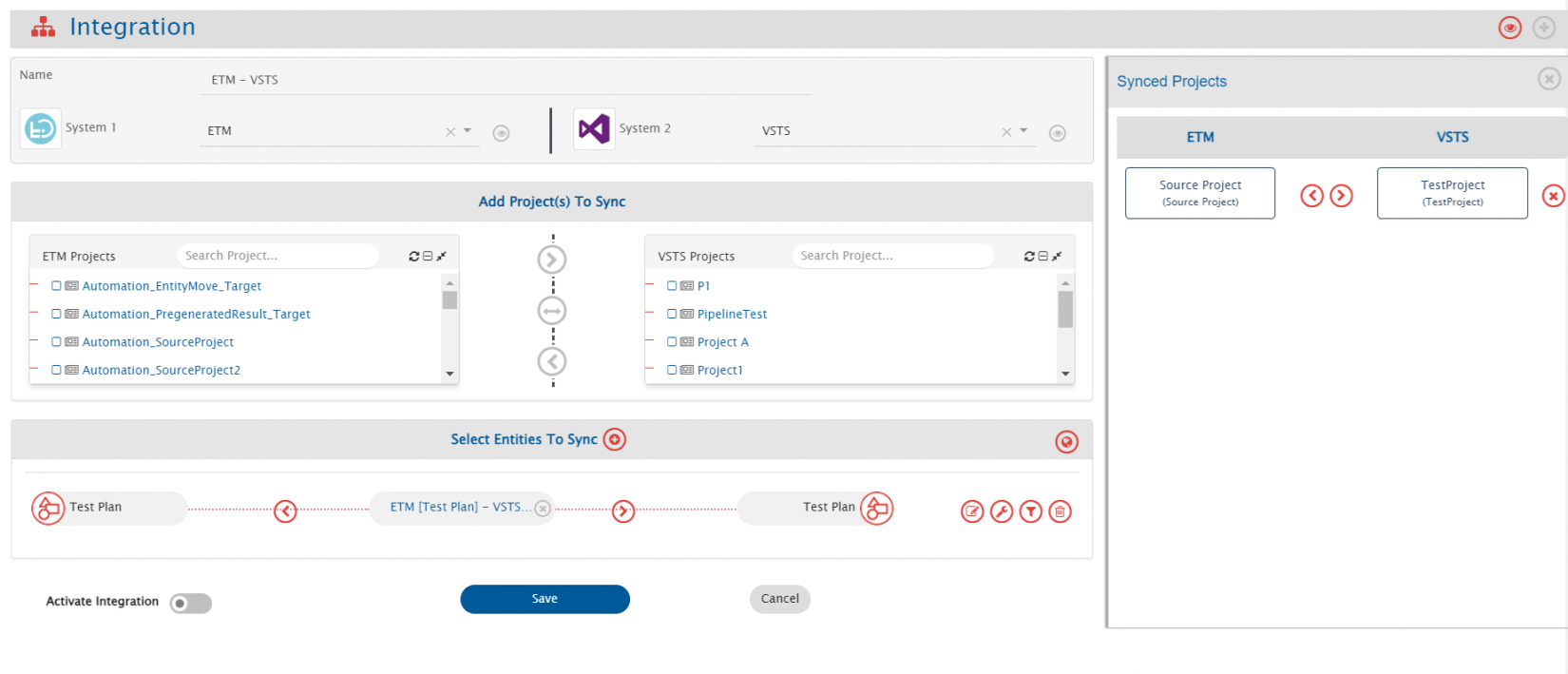 Select projects & entities to be synchronized between ETM and the other system to be integrated. Also, define parameters and conditions, if any, for integration. Refer to Integration Configuration page to learn the step-by-step process to configure integration between two systems.