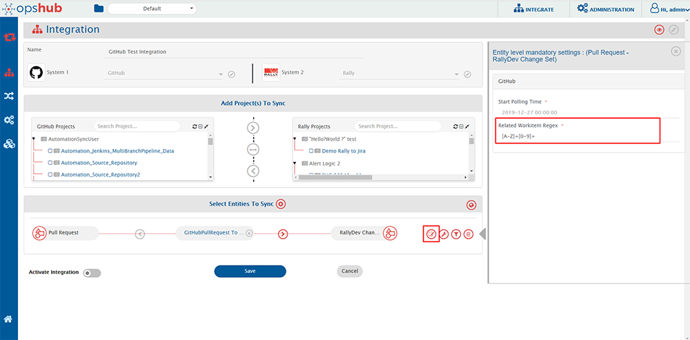 Use Case 2 - Create new work item everytime: If you want integration to synchronize and create an entity in your target system for every entity in source system, then provide an incorrect RegEx which will not match your work item id in your commit message. For example, you can provide RegEx as $OpsHub$. Since $OpsHub$ does not match your work item id, the integration will create a new entity in your target system according to the mapping configured. There is no need to enter a Target Lookup Query in this case.