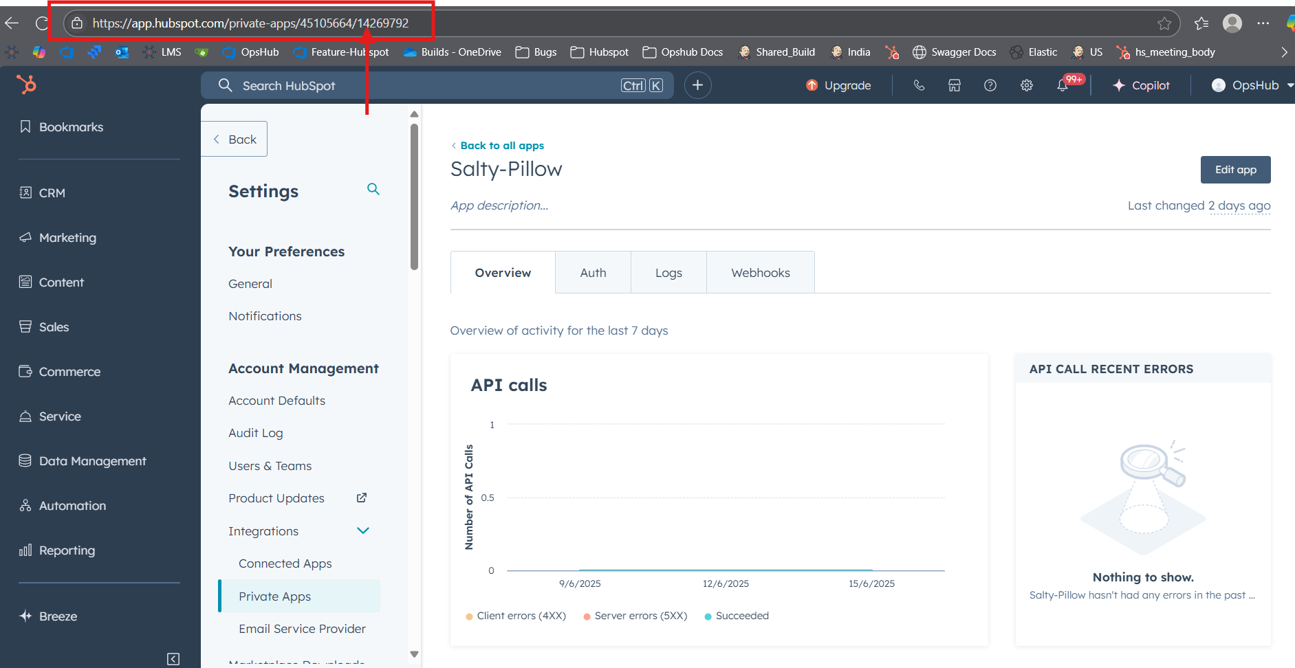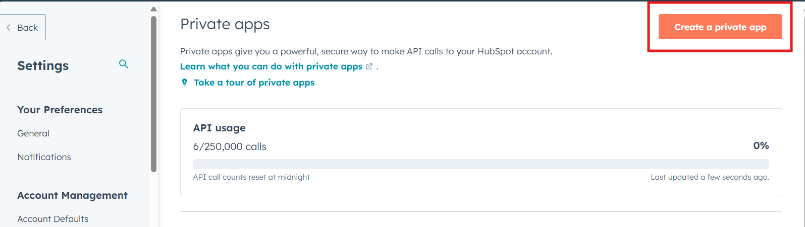 To know more details about this private app, refer to HubSpot Private App Documentation