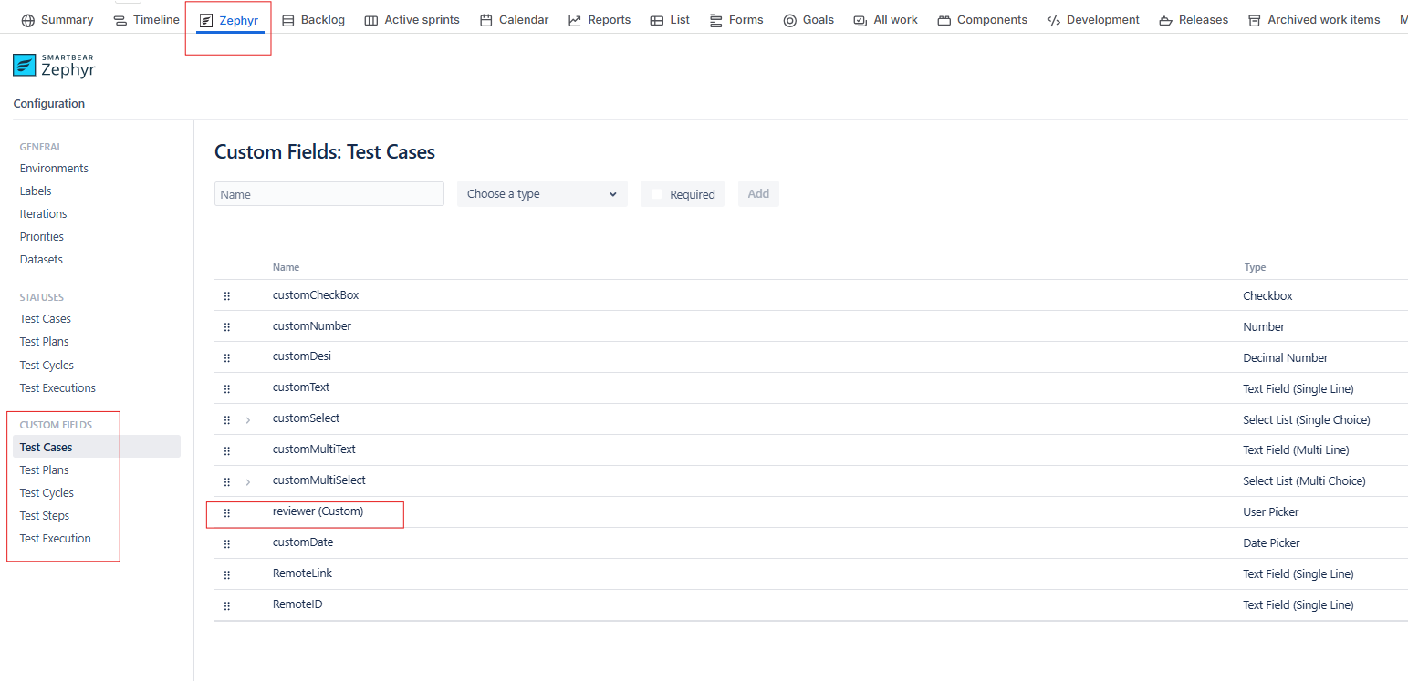 For example, in the above image, reviewer (Custom) is the internal name of a custom field.