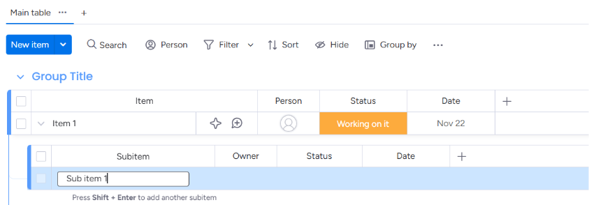 For sub items, 'Parent' is a mandatory relationship linkage as a subitem can only be created inside an item.