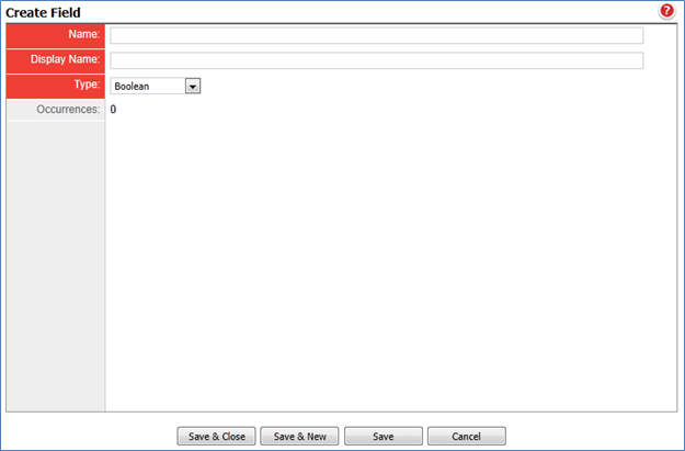 * Select **New Field** to create custom field.